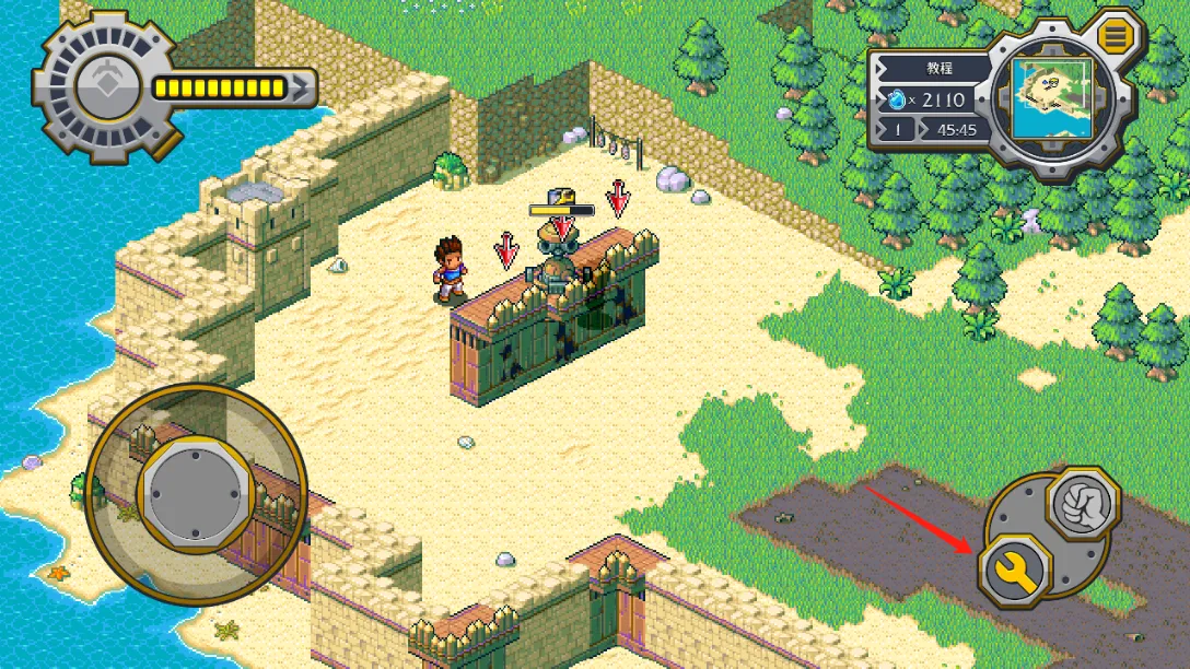 3、收集资源并合理利用:发条人被击败后可搜刮源能,源能用于建造或修理构筑物,靠近围墙点击修复按钮可修复围墙,消耗源能。
