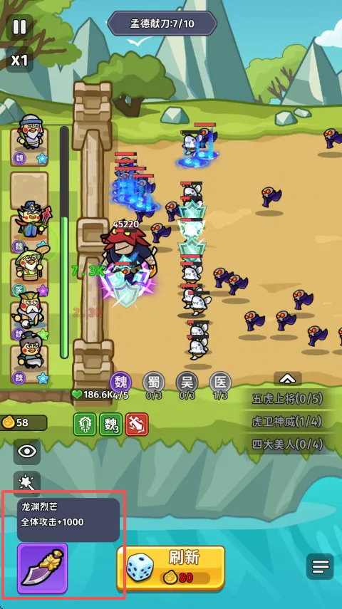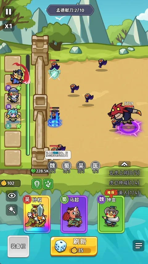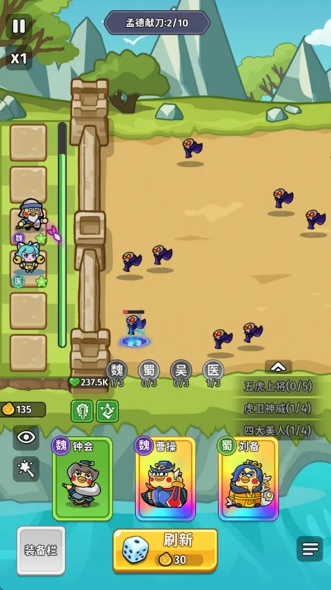 2. 抽卡塔防:采用抽卡塔防模式,抽取武将卡牌抵御一波波敌人。
