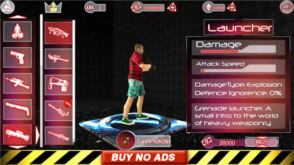 4、在人物属性界面可以更换不同的武器装备,在商城购买解锁道具
