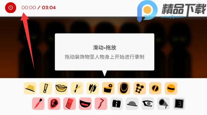 4. 录制作品也很简单,点击左上角菜单中的录制键,出现红点代表开始录制,还有机会解锁隐藏成就彩蛋。
