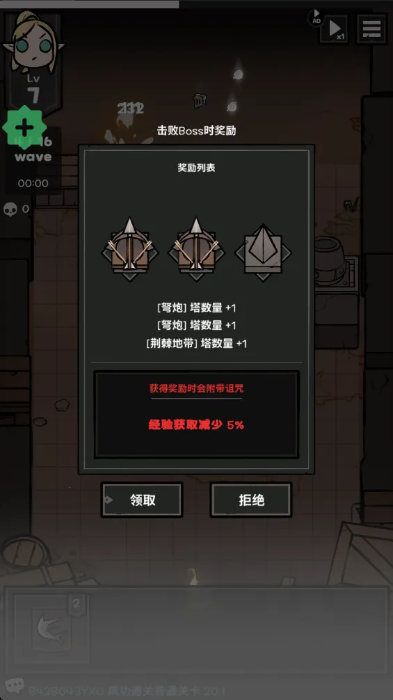 2.死掉的怪物会掉落经验值,经验值攒够之后又可以选择增加炮塔或者提升增益。