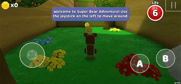 2、左下角轮盘按钮控制超级熊自由移动,右侧屏幕滑动旋转视角,正常情况下A跳跃,B攻击。
