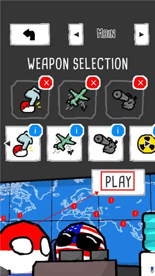 2、在正式的进入游戏之前,玩家们可任意的选择三种武器,待选择完毕后点击“PLAY”即可进入游戏;
