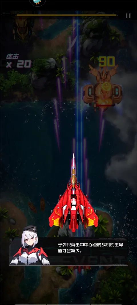 10、玩家需要控制好射击目标,子弹只有射击到中心时战机的生命值才能减少;