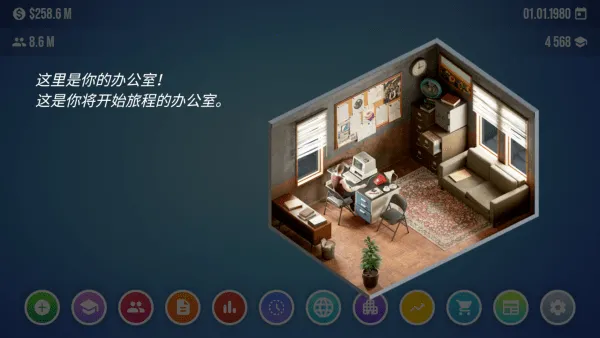 4. 办公室管理:从一个小办公室起步,不断升级工作空间,雇用和培训员工,壮大公司,提升团队生产力和创造力,做出战略决策,建立强大的游戏帝国。