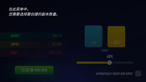 2. 员工开发与生产:回到办公室让员工进行开发,会产生积分,积分越多质量越高。还能创建副本数量,实现自动生产。