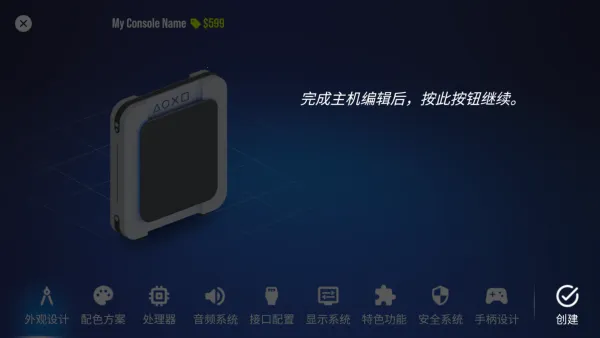 1. 创建控制台:从外观设计到技术规格,都能自主掌控,打造独特的游戏设备。比如选择家庭主机开始编辑,完成后点击创建成功,随后进行定价。