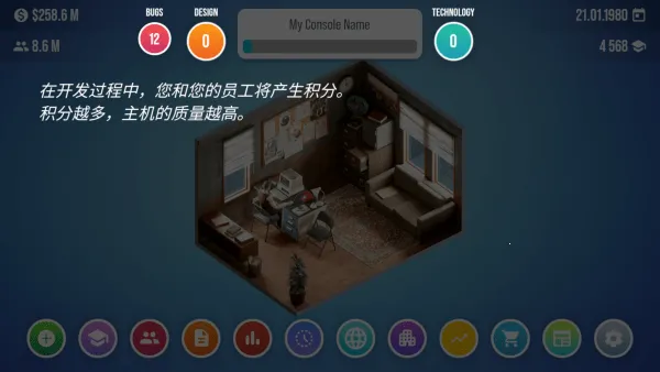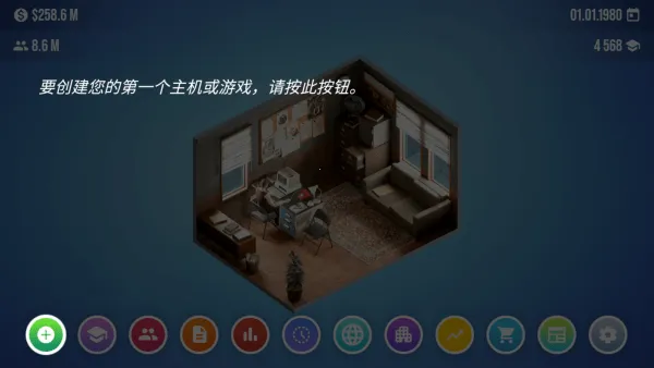 《主机大亨2026》是一款经营模拟器游戏,玩家能在其中建立游戏机帝国。始于1980年,可设计多种设备,通过控制台创建、营销推广、研发等环节,打造独特模拟游戏,还有办公室管理等丰富玩法。