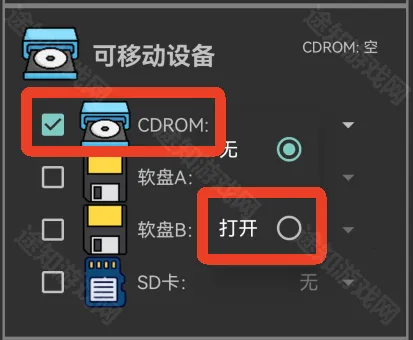 8、然后勾选【可移动设备】的一个,点击打开。这里打开已经下载好的镜像。
