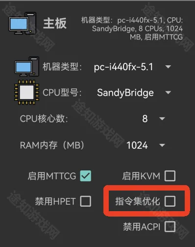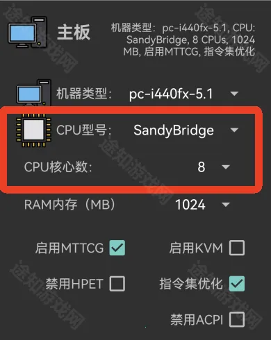 5、CPU型号选择【SandyBridge】,CPU核心数选择【8】。