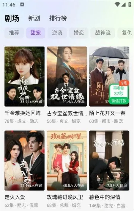 1. 海量短剧随心看:拥有丰富多样的短剧资源,甜宠逆袭、婚恋复仇等各种风格类型一网打尽,满足多样化观看需求。