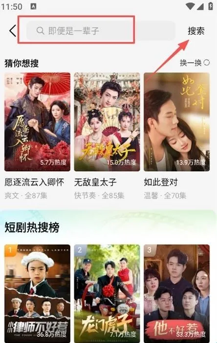 2. 便捷搜索找短剧:能点击上方搜索框,输入短剧名称或关键词进行精准搜索,快速定位想看的短剧。