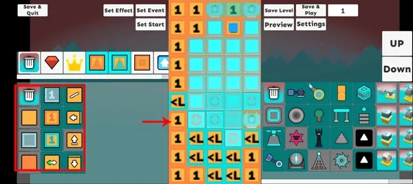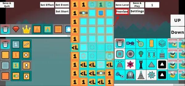 5、制作完之后可以点击箭头方向,这里可以浏览我们制作的关卡;