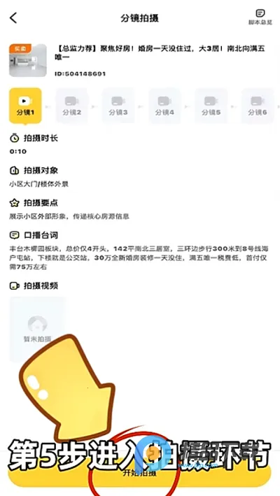 3. 配合拍摄介绍:点击开始拍摄进入房屋拍摄,依照核心卖点台词配合视频画面介绍房屋,使视频内容丰富准确。
