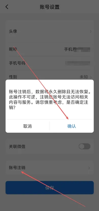 3.最后在账号设置页面中直接点击注销账号之后,在弹出的页面中点击确认即可成功注销。